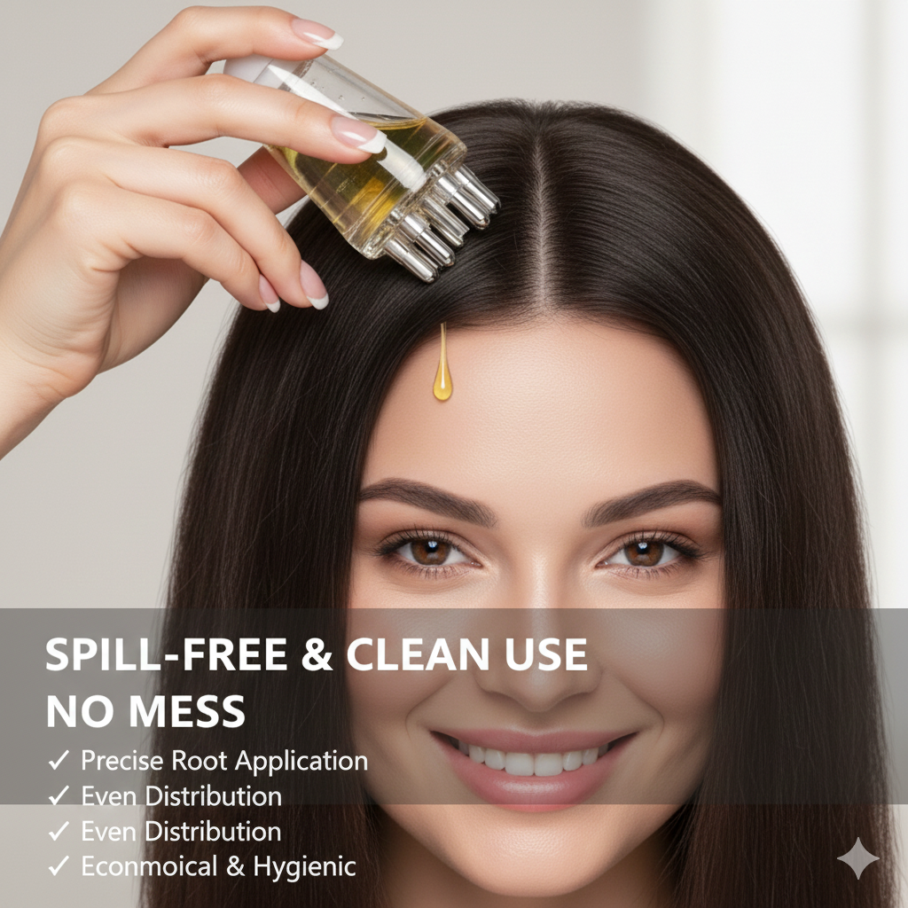 The applicator prevents oil from spilling on hands, clothes, or surfaces. It helps you use the right amount of oil without wasting product, keeping your routine neat and controlled.